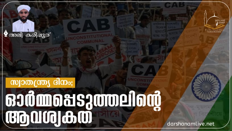 ഭാരതം അതിൻ്റെ എഴുപത്തിനാലാം സ്വാതന്ത്ര്യദിനത്തിലേക്ക് പ്രവേശിക്കുകയാണ്. അധിനിവേശ, കോളനിവൽക്കരണ ശക്തികളുടെ കറുത്ത കരങ്ങളിൽ നിന്നും രാജ്യം മോചനം പ്രാപിച്ചിട്ട് 73 സംവത്സരങ്ങൾ പിന്നിടുമ്പോൾ ചിലകാര്യങ്ങൾ നാം ഓർക്കേണ്ടതുണ്ട്. ഒപ്പം ഇന്ന് രാജ്യത്തിൻ്റെ സഞ്ചാരം എങ്ങോട്ടെന്ന് സവിസ്തരം ശ്രദ്ധിക്കേണ്ടതുമുണ്ട്.