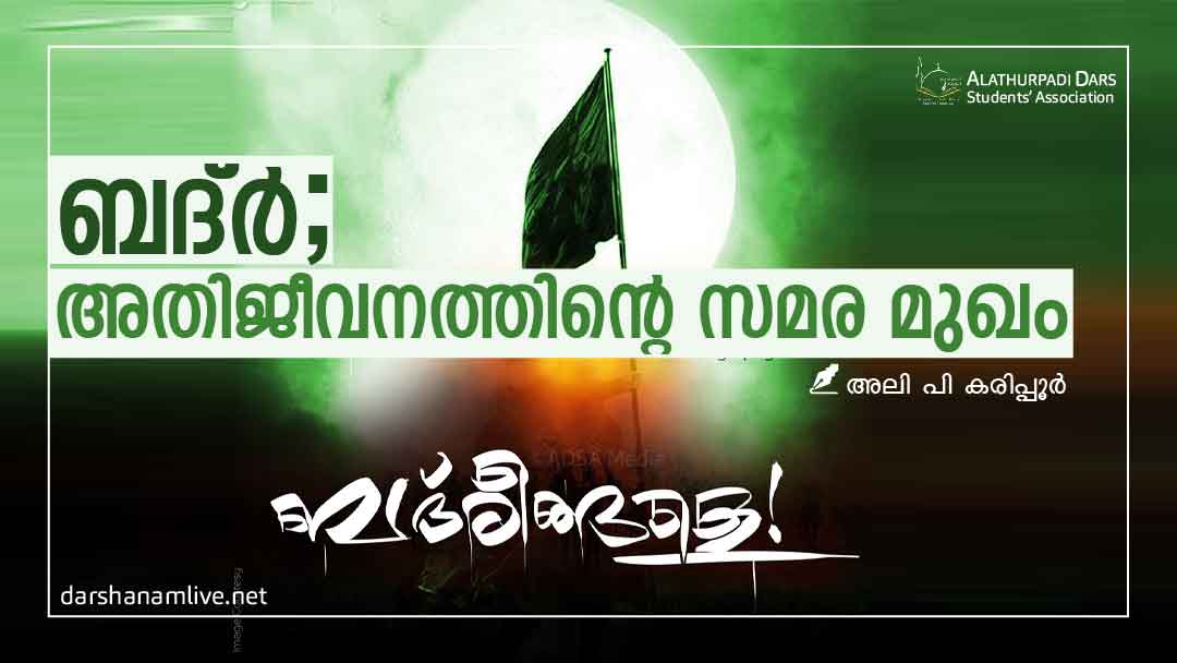 അല്ലാഹുവിൻ്റെ പക്കല് സ്വീകാര്യമായ ഏക മതമാണ് ഇസ്ലാം. ഈ സത്യ മതത്തെ ചെറുക്കാന് ആള്ബലം കൊണ്ട് കഴിയുമെന്ന് മന:കോട്ട കെട്ടിയ കുഫ്റിൻ്റെ കോട്ടയെ അത്മീയതയുടെ ഉരുക്കുകോട്ട കെട്ടി തടുത്തുനിര്ത്തിയ മഹിതമായ ചരിത്രമാണ് ബദ്റില് നടന്ന പോരാട്ടം. ഹിജ്റ രണ്ടാം വര്ഷം റമളാന് 17 വെള്ളിയാഴ്ചയായിരുന്നു അത്. വാള്മുനകൊണ്ട് പ്രചരിച്ച മതമല്ല ഇസ്ലാം പക്ഷെ,അക്രമിക്കാനായി ഇറങ്ങി പുറപ്പെട്ടവര്ക്കു മുമ്പില് മുട്ട് മടക്കാന് തങ്ങള് ഒരുക്കമല്ലെന്ന് തെളിയിച്ചിട്ടുണ്ട്. അതായിരുന്നു ബദ്ര്. യുദ്ധത്തിന്റെ കഥയല്ല, അതിജീവനത്തിൻ്റെയും ഈമാനിക ശക്തിയുടെയും, ഒപ്പം അതിരറ്റ പ്രവാചക സ്നേഹത്തിൻ്റെയും സംഘശക്തിയുടേയും പാഠങ്ങളാണ് ബദ്ര് നല്കുന്നത്.