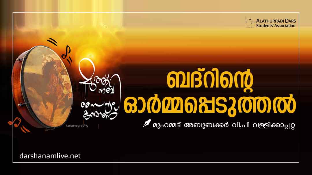 ‘അല്ലാഹുവേ.. എന്നോടുള്ള നിന്റെ കരാര് നീ വീട്ടുക. ഈ ചെറു സംഘം ഇവിടെ പരാജയപ്പെട്ടു പോയാല് പിന്നീട് നിന്നെ ആരാധിക്കുന്ന ഒരു മനുഷ്യനും ഈ ഭൂലോകത്ത് ഉണ്ടാവുകയില്ല’ എന്ന റസൂലിന്റെ പ്രാര്ത്ഥനയുടെ വിജയമാണ് ബദ്ര് നമ്മെ ഓര്മ്മിപ്പിക്കുന്നത്.